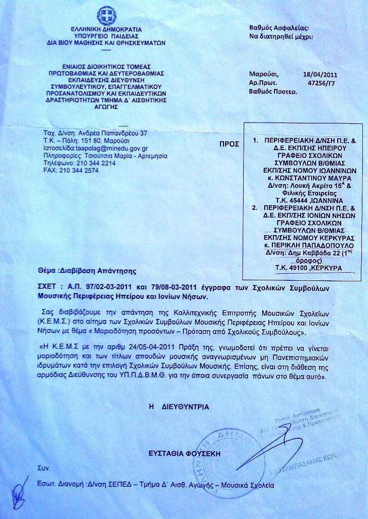 Ρόλος Σχολικού Συμβούλου στις Εξεταστικές Επιτροπές Μουσικών Σχολείων